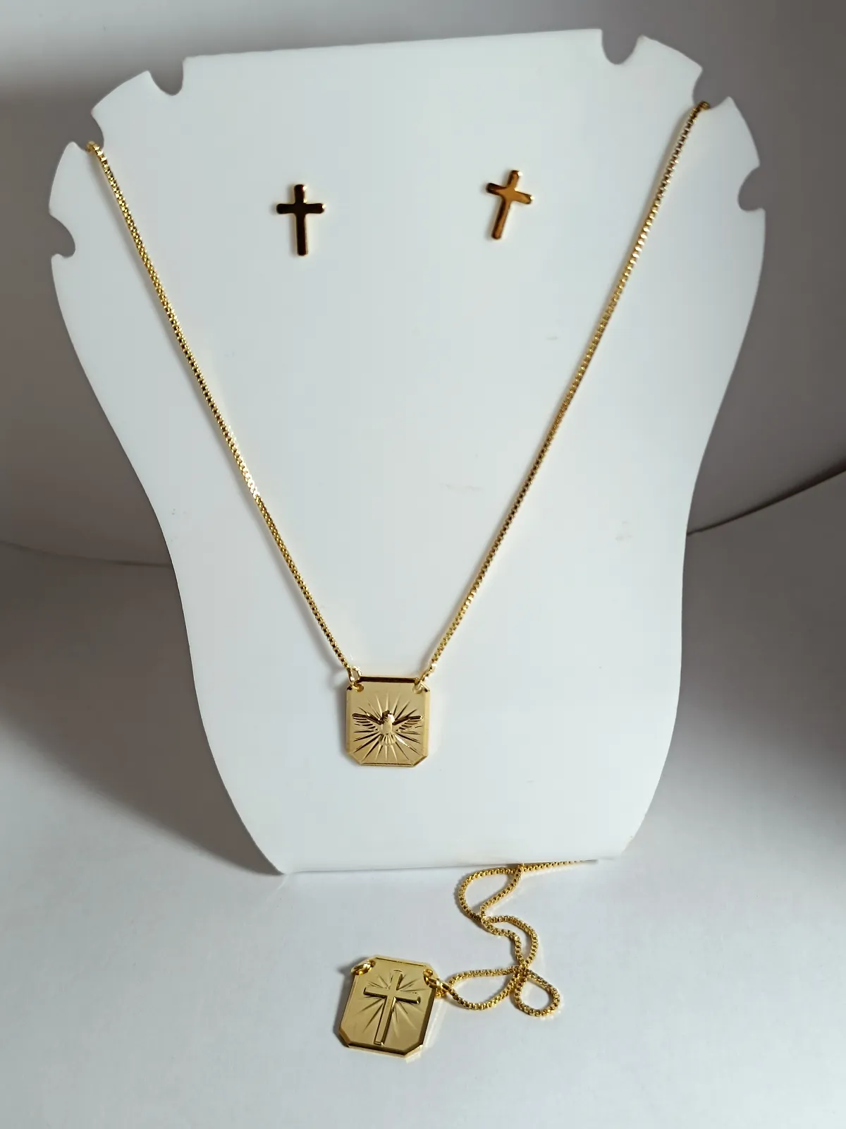 Folheado- conjunto brinco e colar ponto de luz redondo cravejado