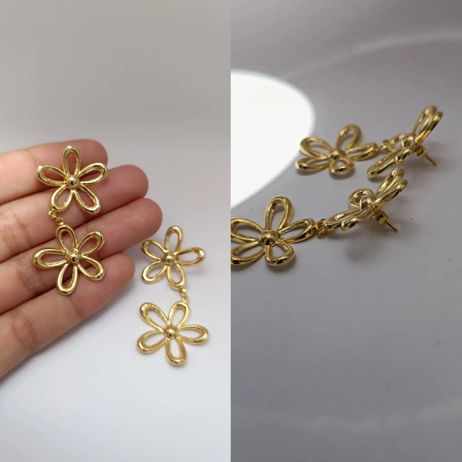 Folheado- conjunto brinco e colar flor rosa(infantil)