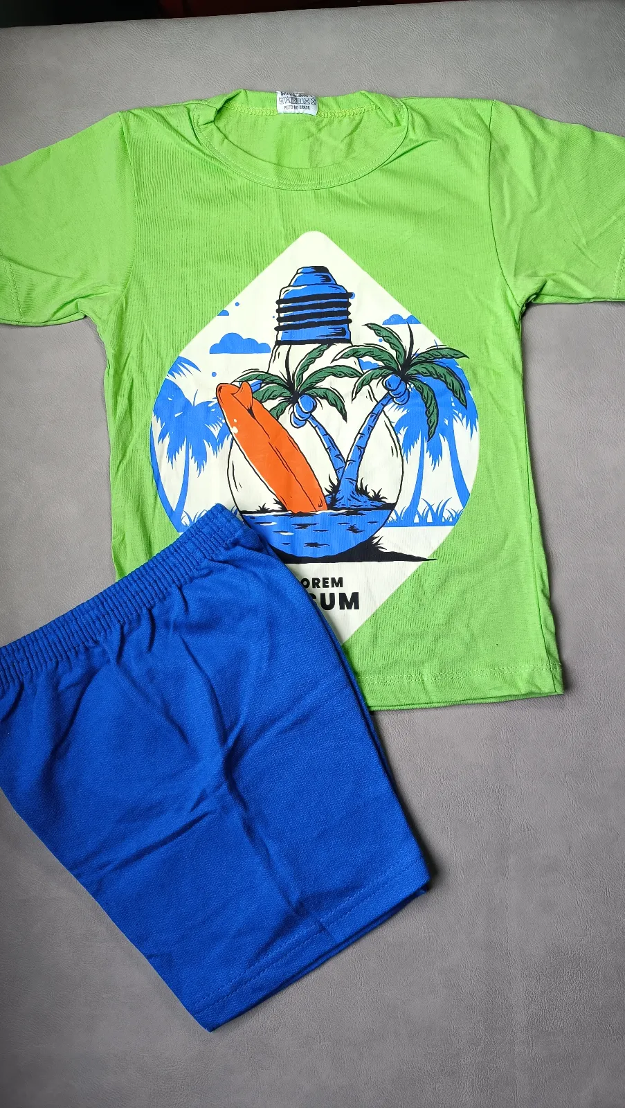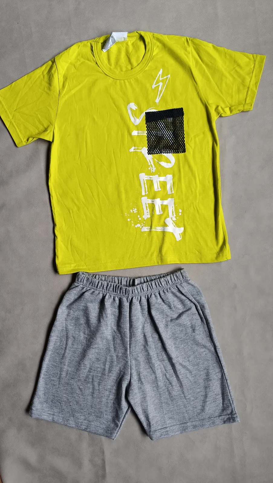 Tam 10- conjunto camisa com manga verde limão e short cinza codi 199