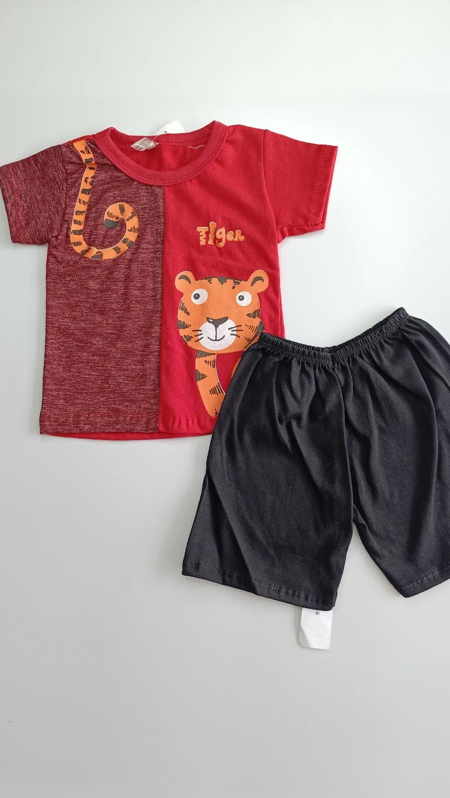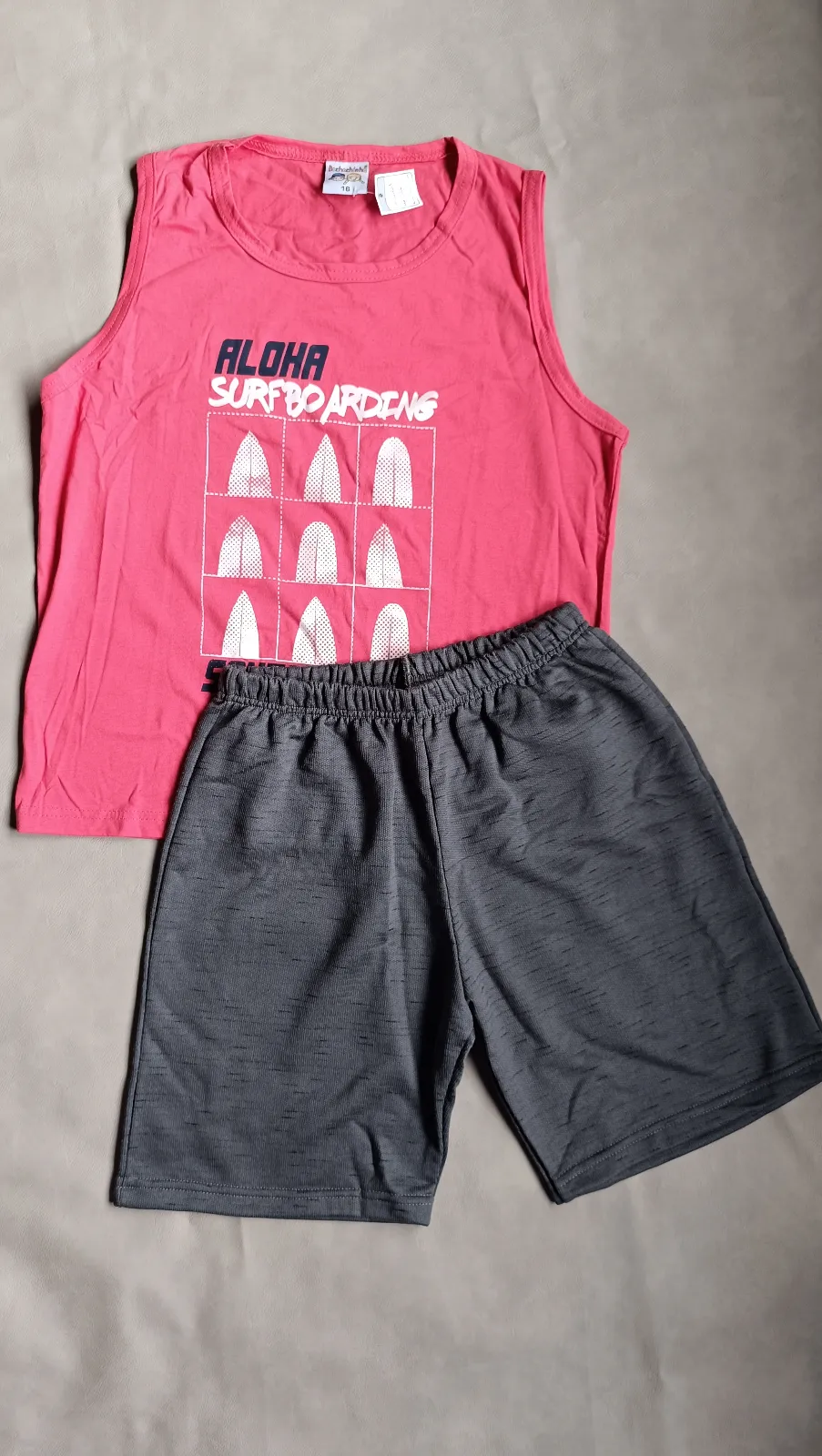 Tam 16- conjunto camisa regata rosa Aloha com short cinza cod i 207