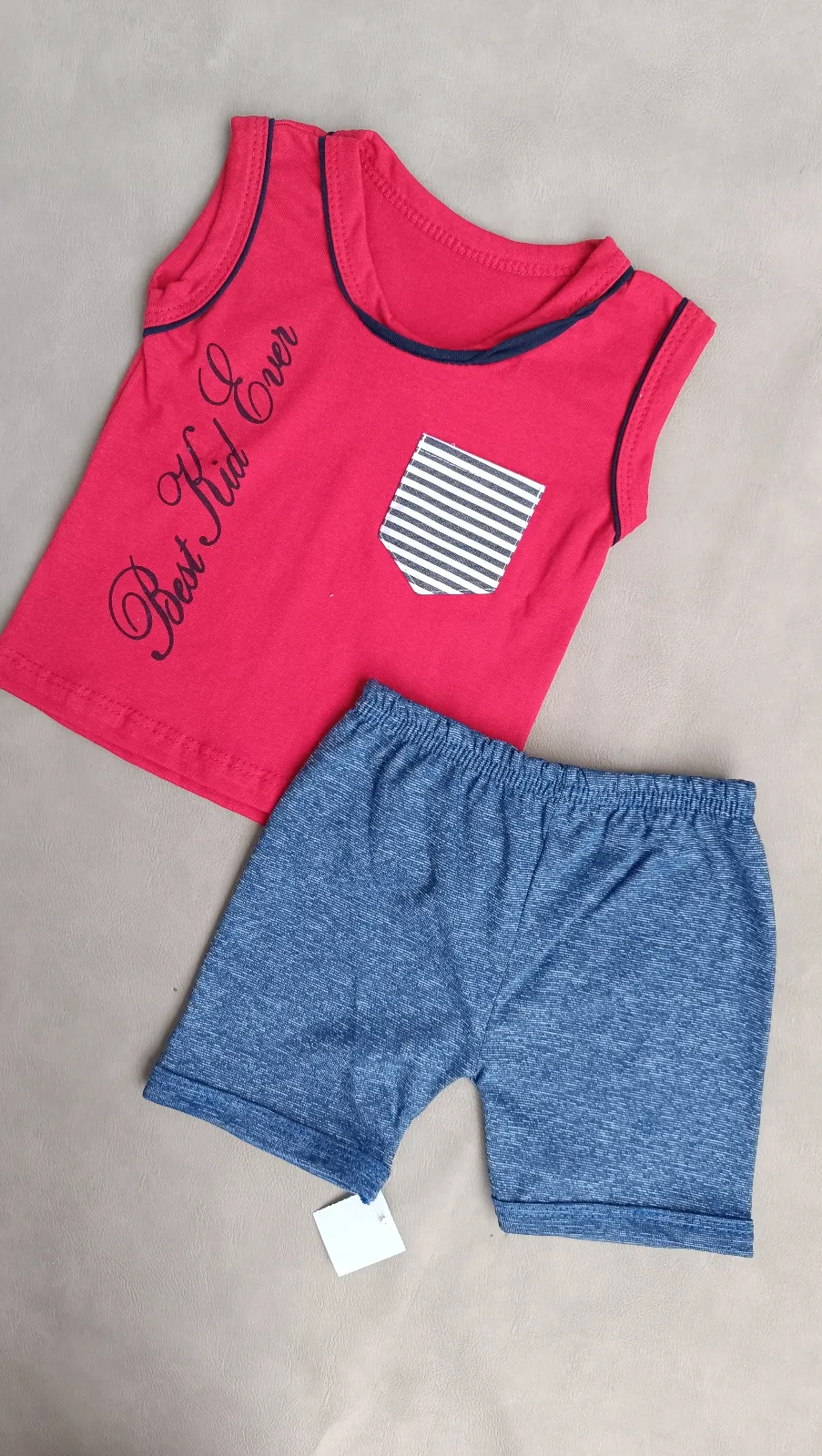 RN menino - conj veste bestkid blusa regata vermelha com short jeans azul cod i 146