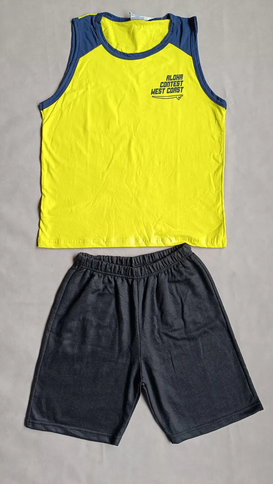 RN menino conjunto short preto com blusa regata azul/ branco / preto cod i 145