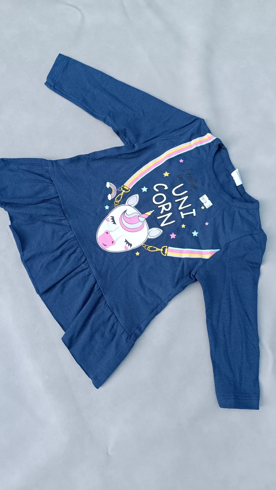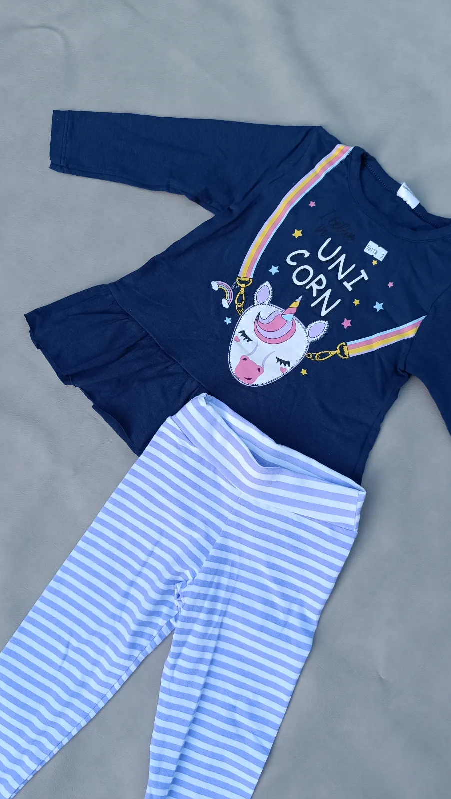 Tam 02 menina - conjunto leg blusa azul unicórnio e leg listra lilás cod i110