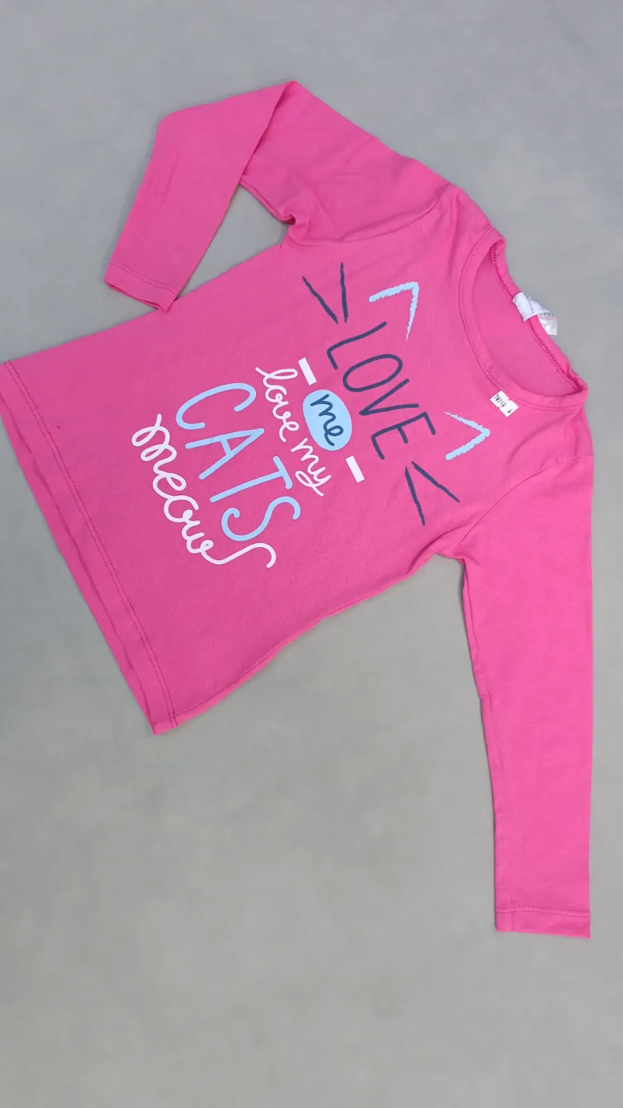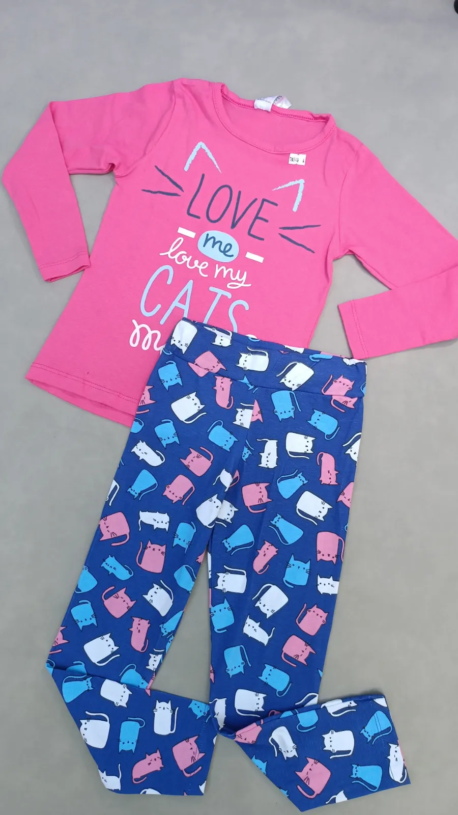 Tam 06 menina conjunto leg azul gatos colorido e blusa rosa love cats cod 118