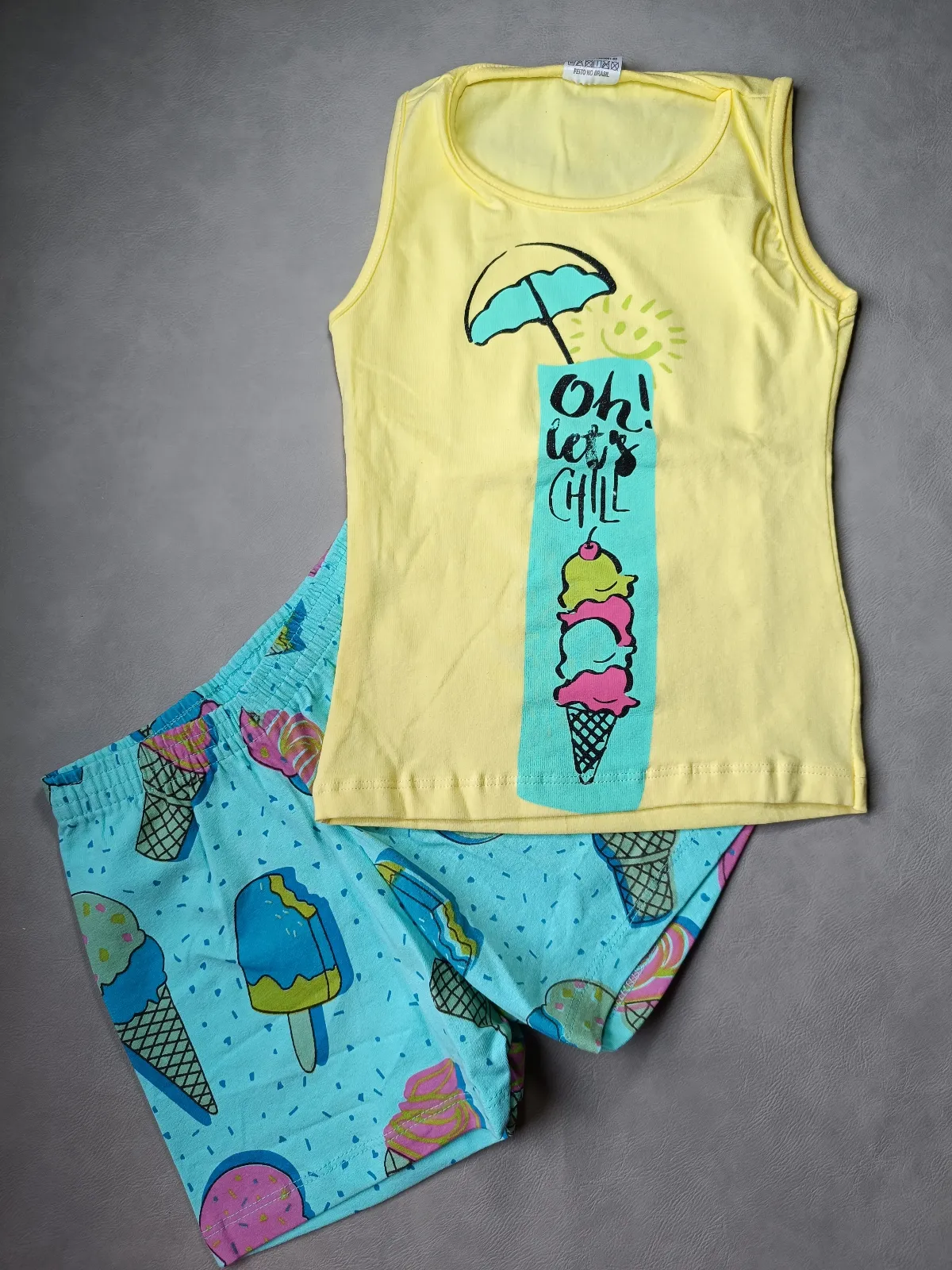 Tam 08 infantil menina conjunto short estampa picolé e blusa regata amarela cod i 47oh ler chill