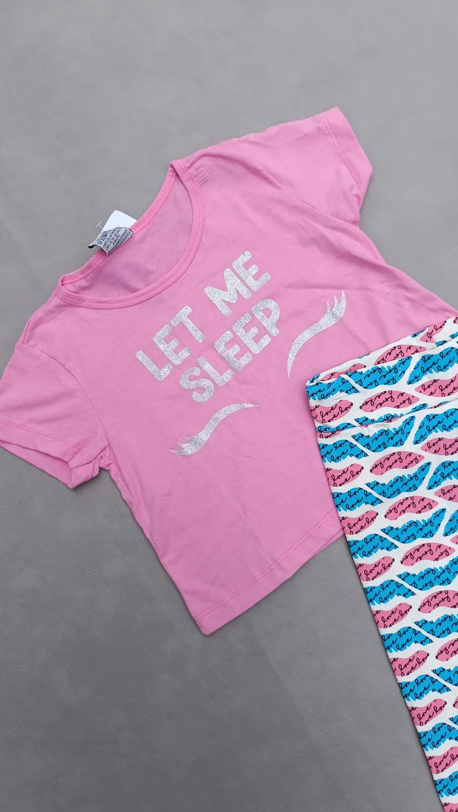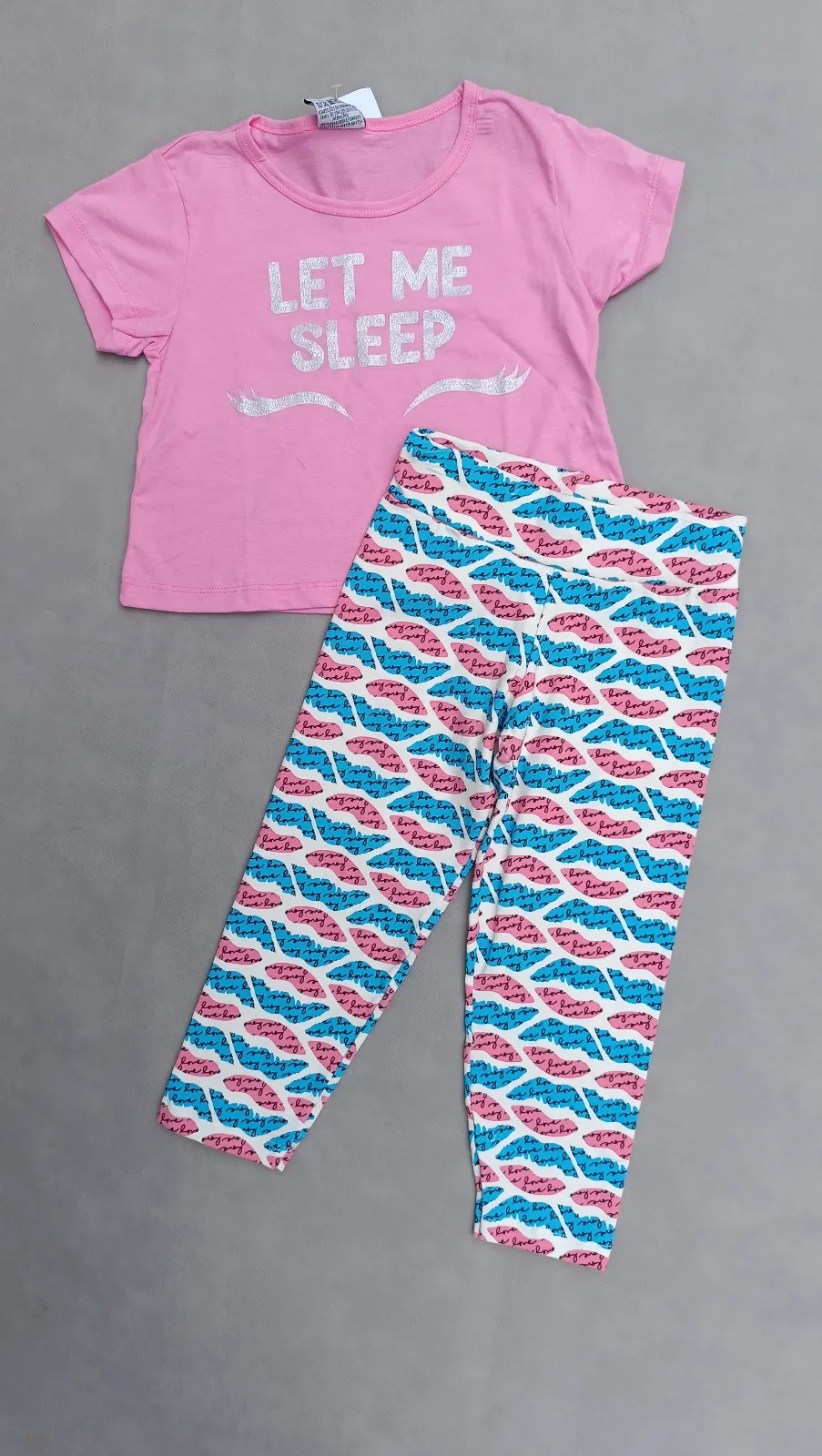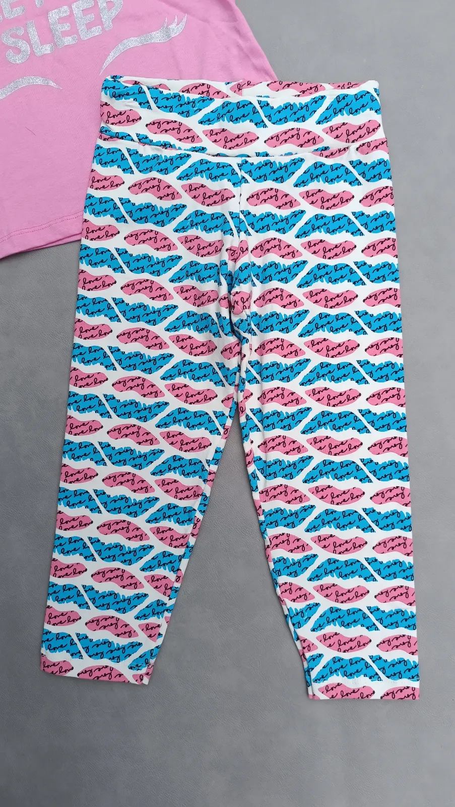 Tam 12 menina - conj blusa Cropped rosa com leg metade da perna estampa levo azul e rosa cod i 191