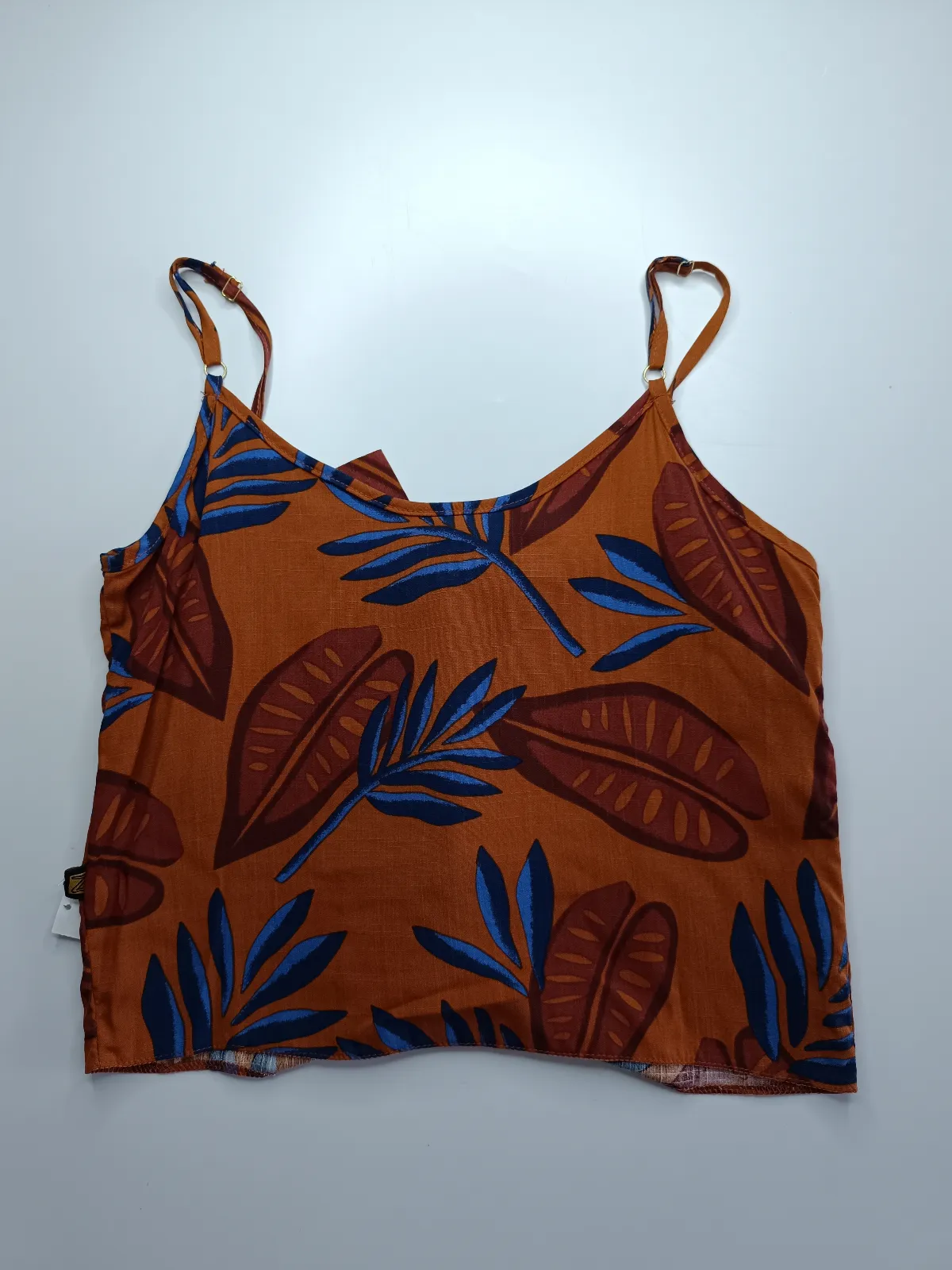 Tam P- cropped marrom estampado tecido 100% algodão/ codfe12