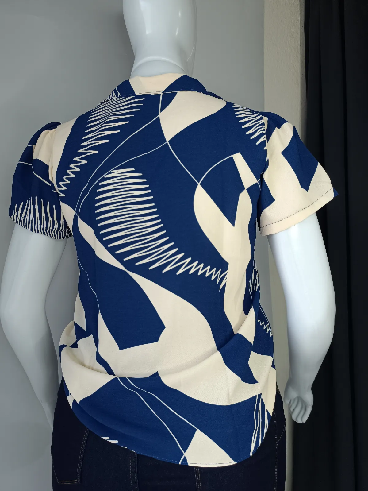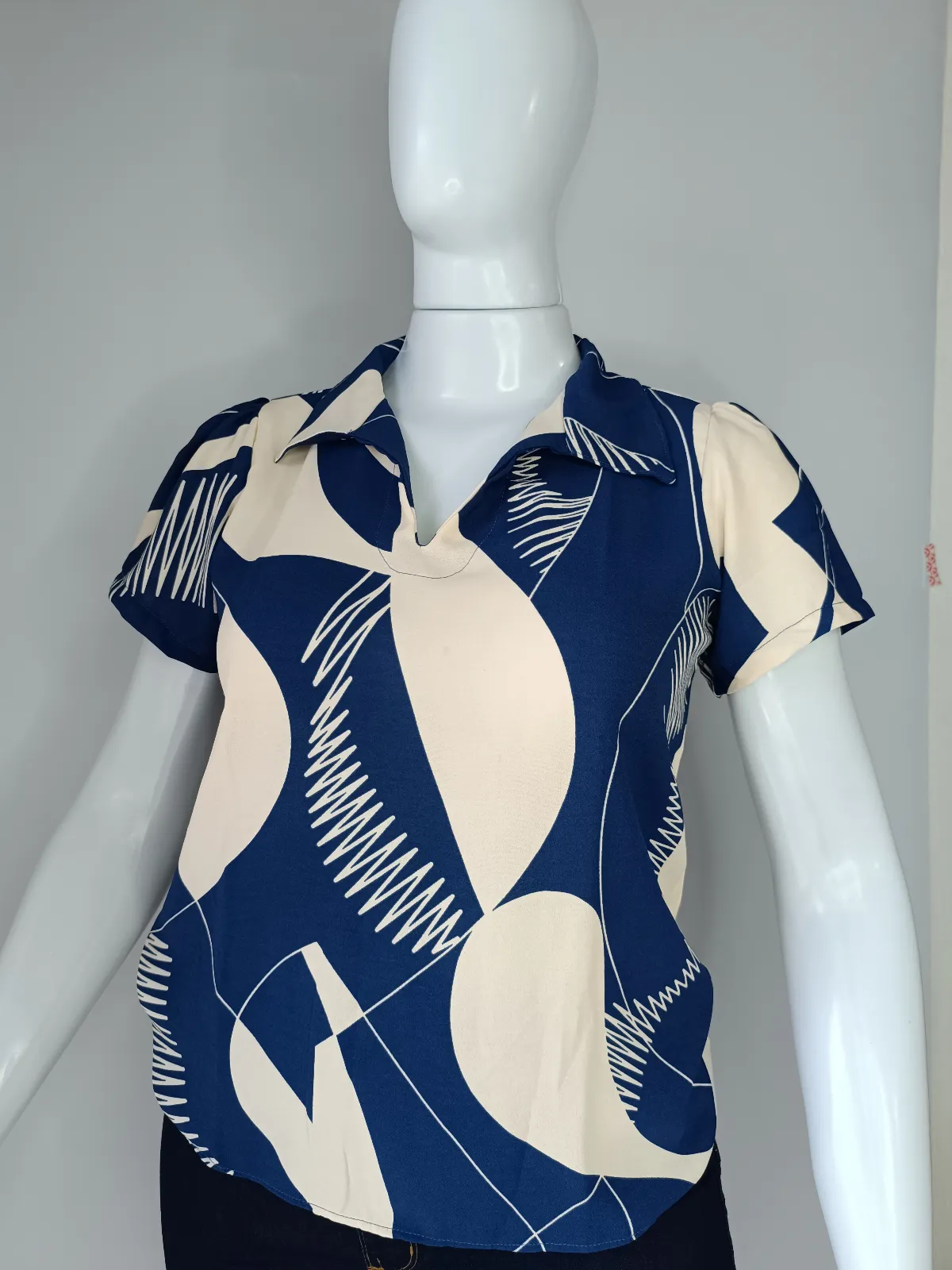 Tam M- blusa com gola TECIDO 100% viscose ( tecido não amassa) nude e azul estampado/ codfe462