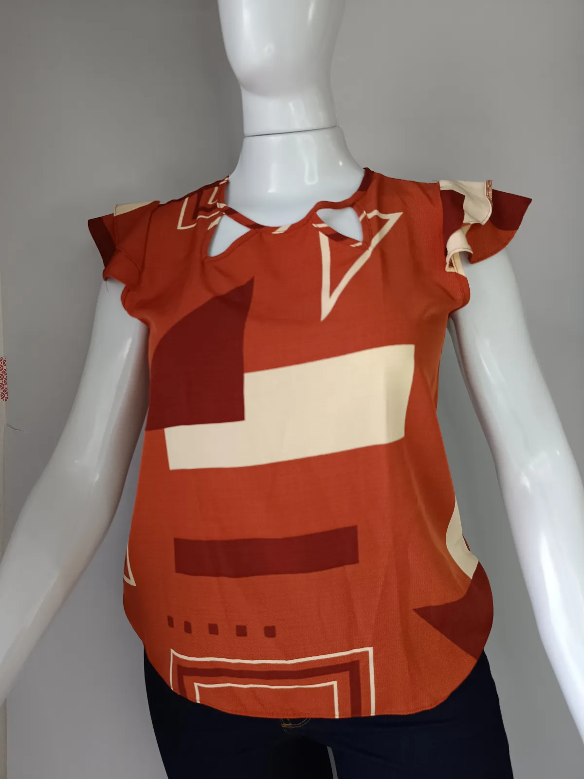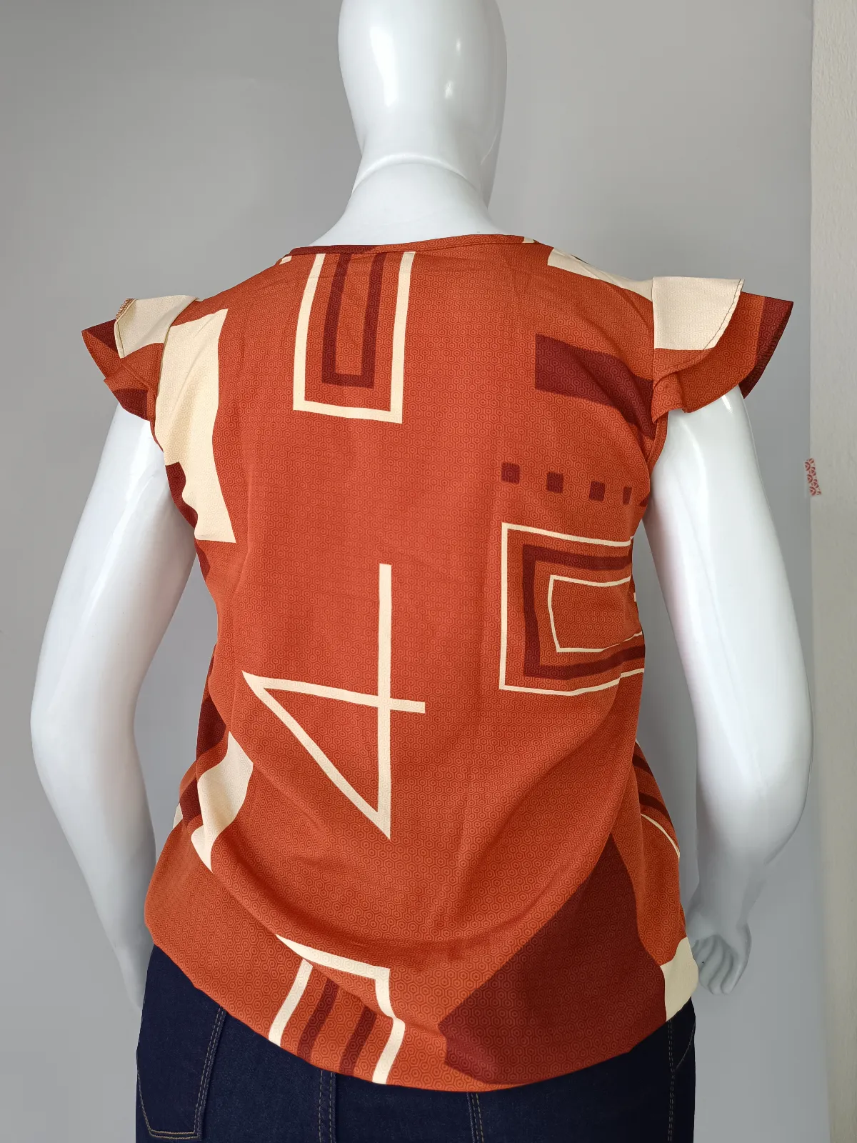 Tam M- blusa manga livre TECIDO 100% viscose ( tecido não amassa) nude e marrom terra estampado/ codfe459