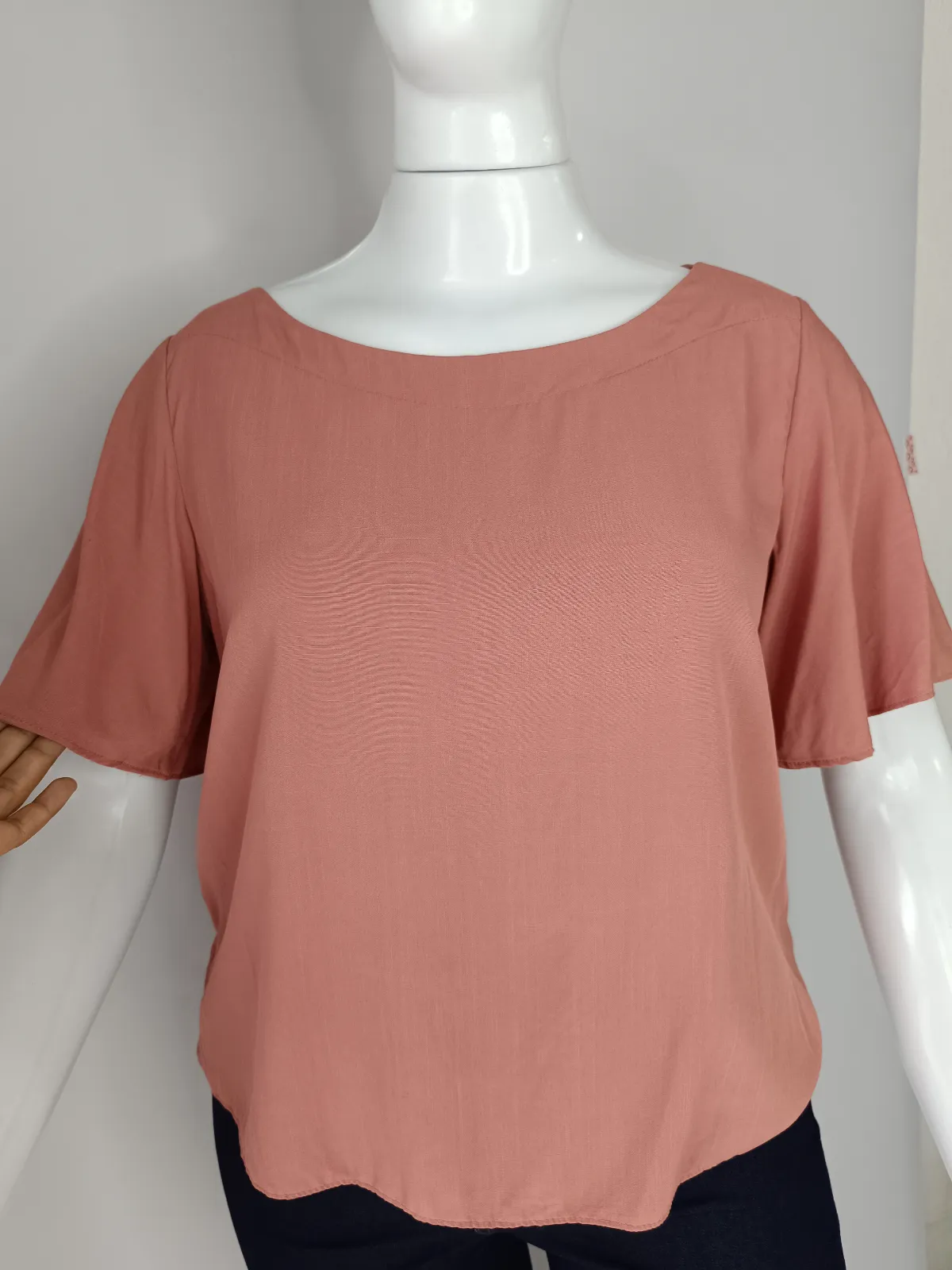 Tam M- blusa com manga TECIDO 100% viscose rosa goiaba liso / codfe397