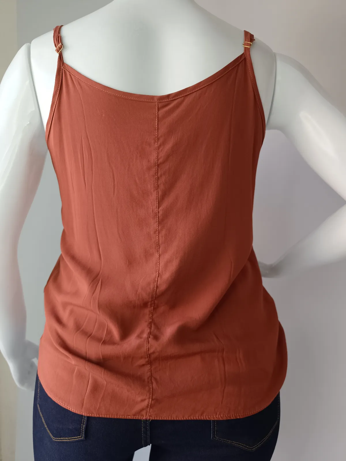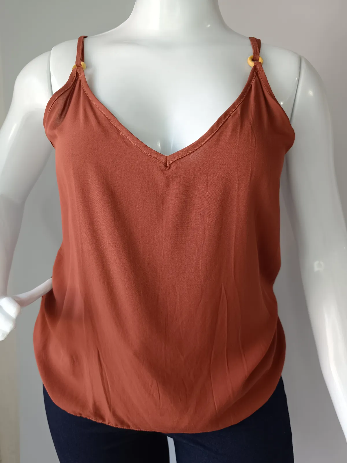Tam M- blusa de alça com argola tecido 100% viscose marrom liso/ codfe319