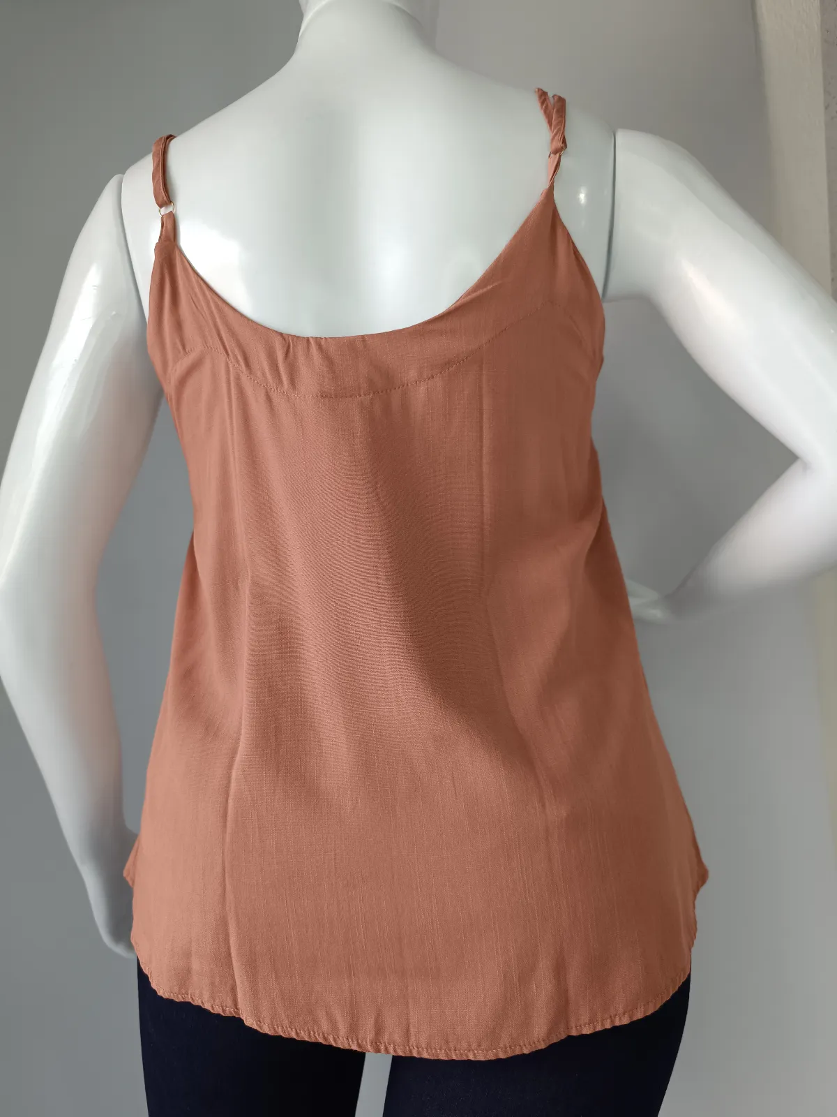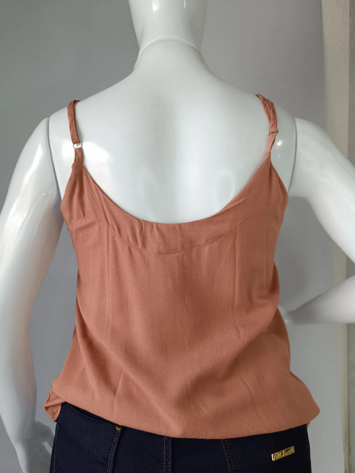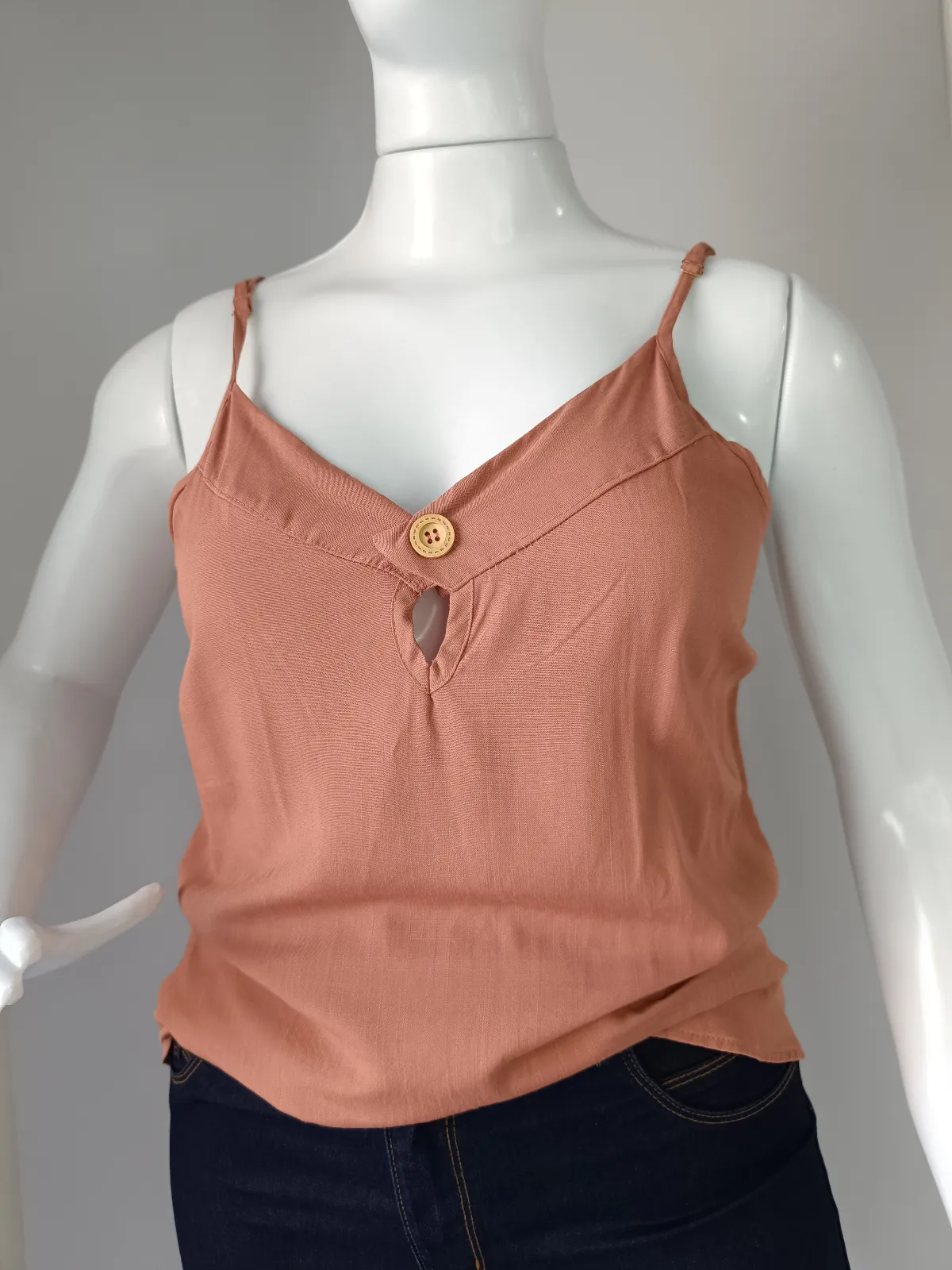 Tam M- blusa de alça com botão tecido 100% viscose rosa goiaba liso/ codfe313