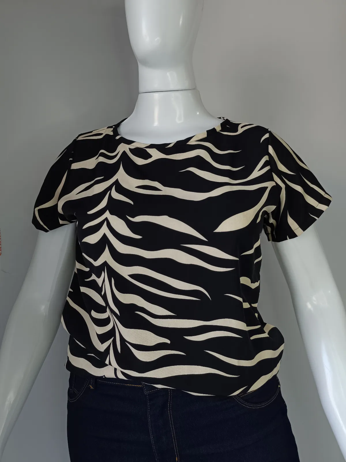 Tam G- blusa manga tecido 100% viscose( TECIDO NÃO AMASSA) nude e preto estampado/ codfe455