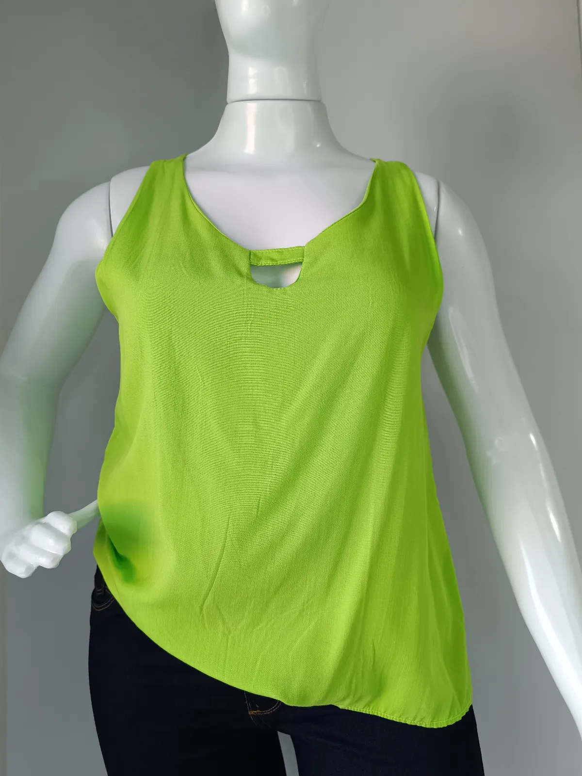 Tam G- blusa sem manga tecido 100% viscose verde limão liso/ codfe308