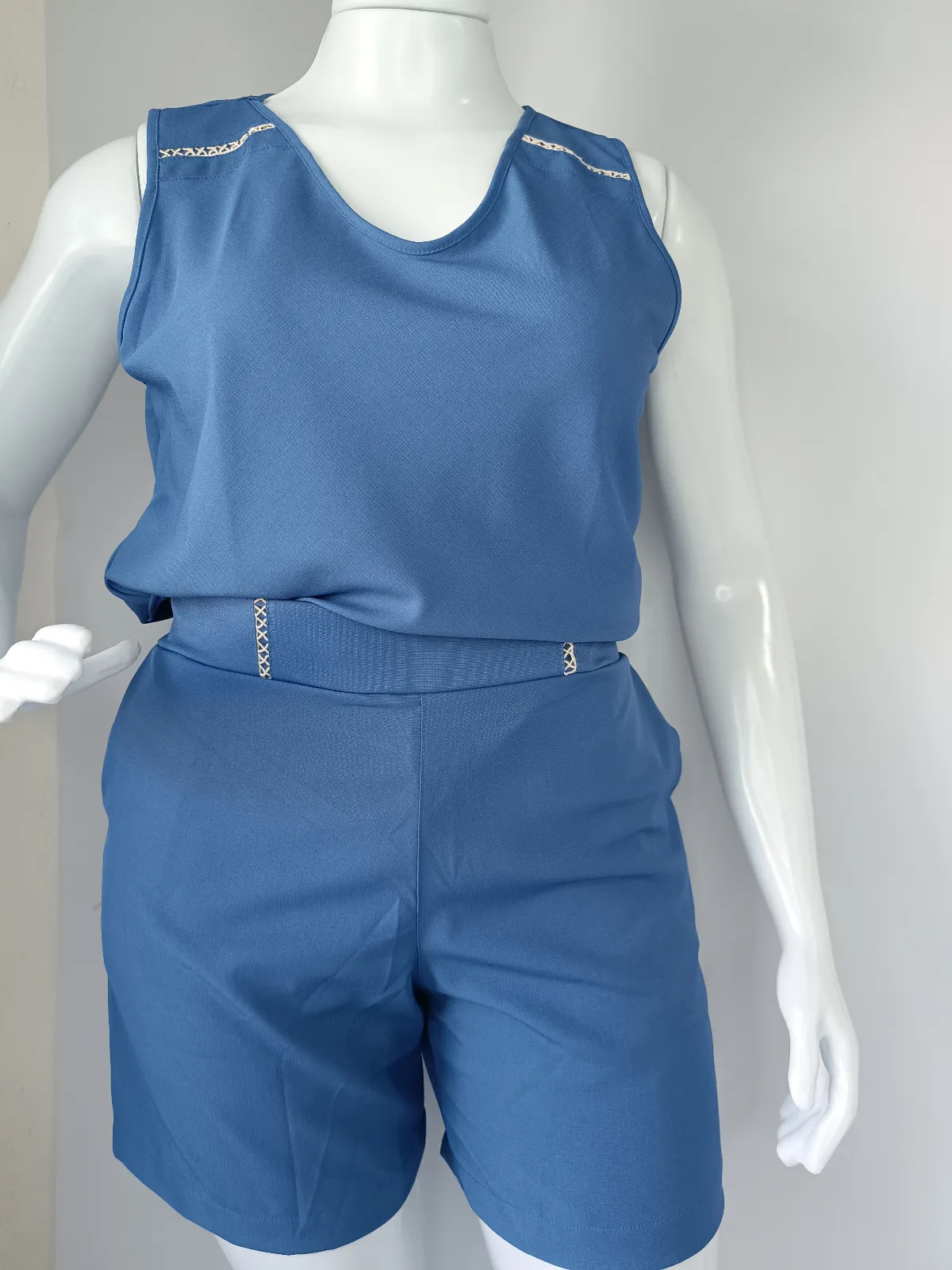 Tam G- Conjunto short (com forro) e blusa 100% Poliester e elastano cor azul claro/codfe447