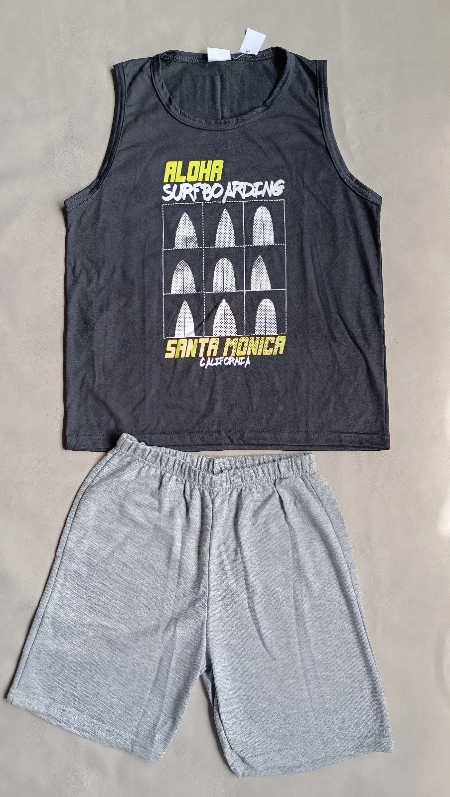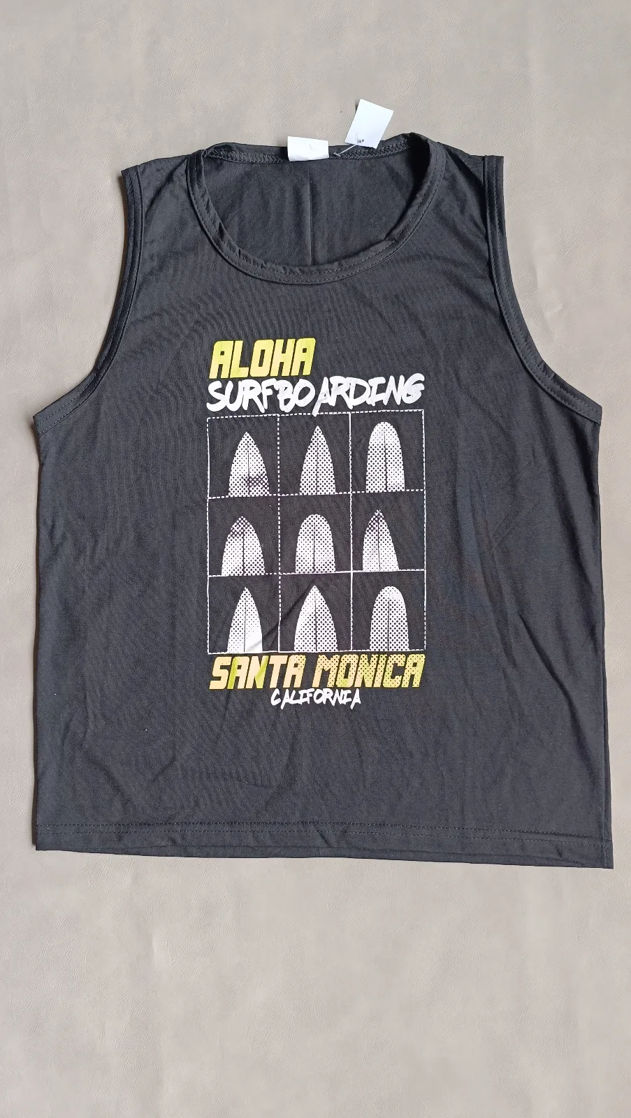 Tam 16- camisa regata preta aloha e short cinza cod i 208